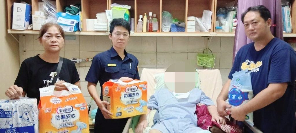 石光派出所所長黃庭翔及警察志工尤秀卿、陳谷智等人,前往轄內探視弱勢家庭,得知55歲李姓婦人,因丈夫工作發生意外成為植物人,日常生活除需悉心照料丈夫,同時要照顧高齡90歲的婆婆,家中收入微薄,生活捉襟見肘。石光派出所獲悉後,主動聯繫志工及熱心民眾共同發起愛心行動,慷慨集資募捐民生必需品白米、泡麵、餅乾、尿布及衛生紙等物資,適時雪中送炭,助其渡過難關。