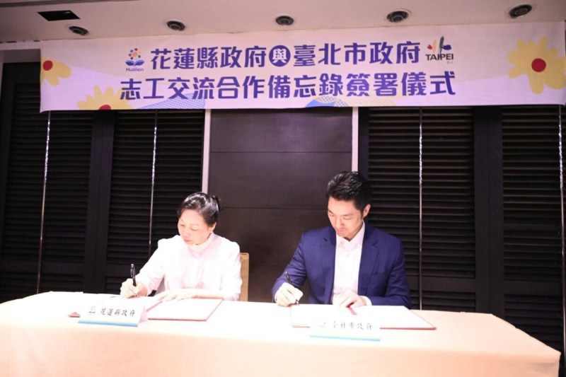 花蓮縣政府與臺北市政府今(11)日於臺北市君悅酒店舉行志工交流合作備忘錄簽署儀式,由花蓮縣長徐榛蔚與臺北市長蔣萬安正式簽署合作意向書,雙方將秉持資源共享、合作共榮之理念,攜手建立志願服務合作平台,期盼透過跨縣市的交流與協作,擴大志工服務的影響力,共同提升志願服務品質與效益。