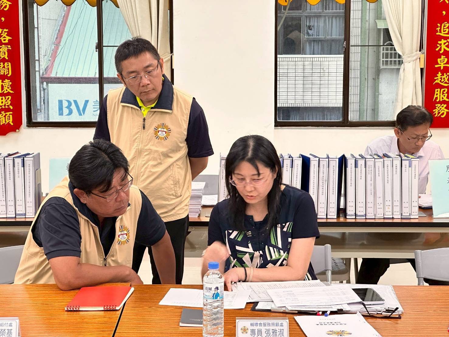 圖説:輔導會輔訪人員與本處業務相關人員進行交流。(榮服處提供)