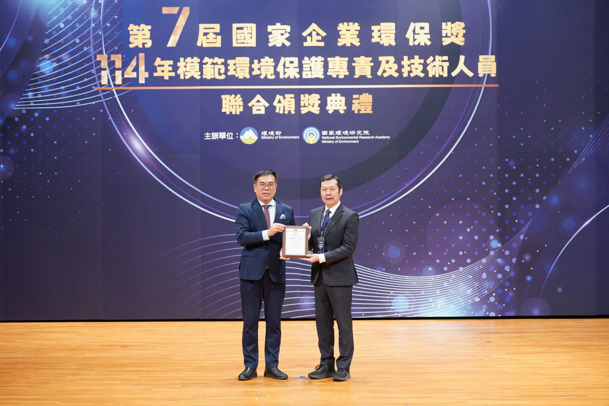 ▲奇美醫院榮獲第7屆國家企業環保獎-金級獎,與其他獲獎企業代表接受副總統蕭美琴表揚。(圖/奇美醫院提供)