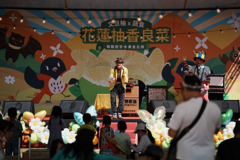 首日舞台亮點由「洄瀾新秀爭霸讚」閃耀之星 Akua*SKD 帶來精彩演出,次日將由「洄瀾之星」偏執狂樂團接力登場。活動兩日皆安排不間斷舞台互動,包括親子魔術、泡泡秀、折氣球、腹語表演,以及趣味遊戲「推柚高手」、「柚子套圈圈」,現場充滿笑聲與拍照打卡的歡樂氛圍。