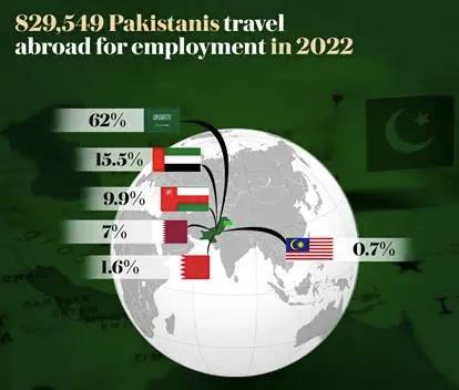 巴基斯坦僑民全球分佈圖,旅居沙烏地阿拉伯佔巴僑總額62%。圖片來源:阿拉伯衛星電視台