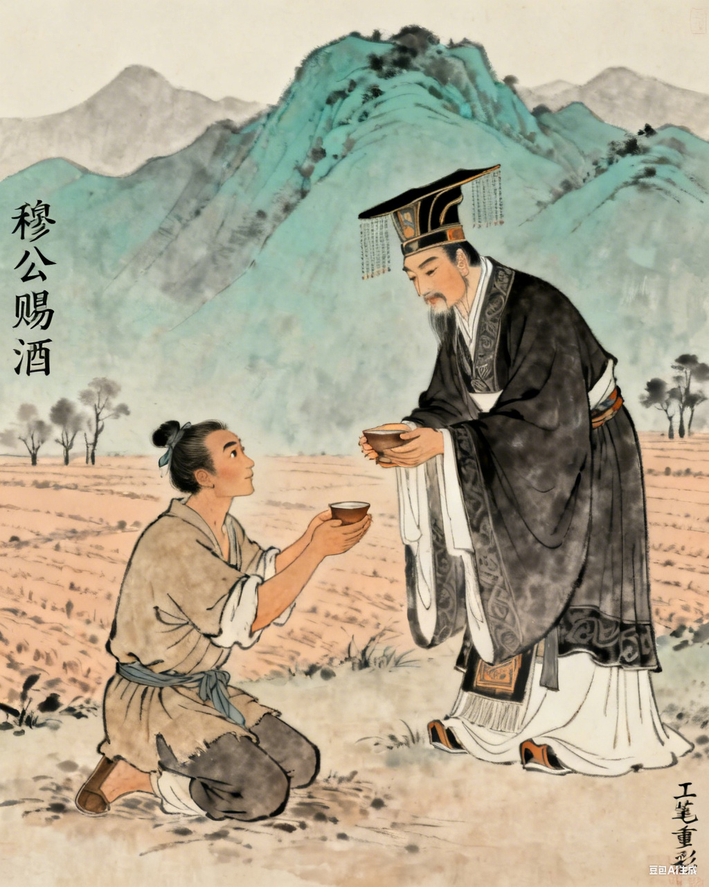 眾人聞言,個個嚇得魂飛魄散,跪地求饒。誰知秦穆公接下來的話語更讓眾人跌破眼鏡:「我曾聽說,食用駿馬之肉若不配以美酒,將會對身體造成傷害。」說罷,他下令侍從取出隨身攜帶的美酒,親自為每個村夫斟酒。