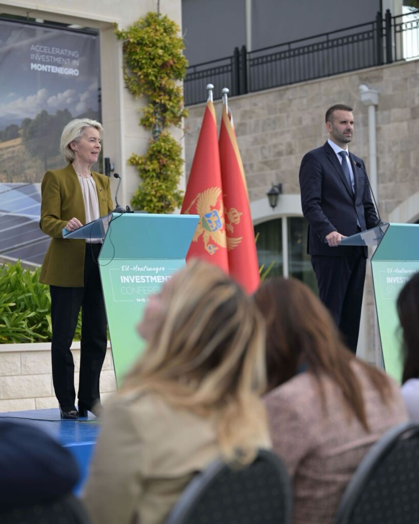 在蒙特內哥羅舉行為期兩天(10/14-10/15)的「智慧成長、綠色未來 Smart Growth, Green Future — Accelerating Investments in Montenegro」投資會議上,馮德萊恩與蒙特內哥羅總理米洛伊科.斯帕吉奇(Milojko Spajić)共同出席,歐盟與當地企業/投資者簽署並啟動了14項合作專案。這些專案涵蓋再生能源(太陽能、風電)、運輸基礎設施、農旅(agrotourism)、數位創新園區以及低碳發展等領域,旨在為當地創造高品質就業與長期投資機會,示範歐盟與蒙特內哥羅在經濟與綠色轉型的具體合作。官方簡報與會場說明皆指出,14項專案強調私部門與歐盟資源的配合,示範「準備投資即是推動入盟的實務面」。