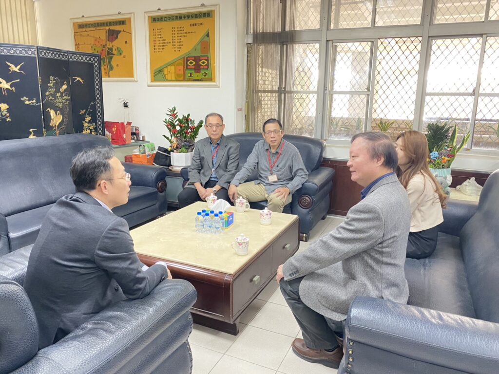王政彥校長(右1)感謝中正高中陸炳杉校長(左1)全力支援分區場地與試務工作